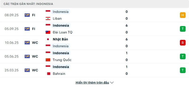 Thống kê phong độ gần đây Indonesia vs Ả Rập Xê Út