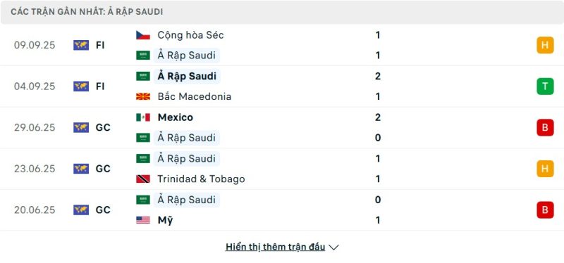 5 trận gần nhất của Ả Rập Xê Út: D-W-L-D-L