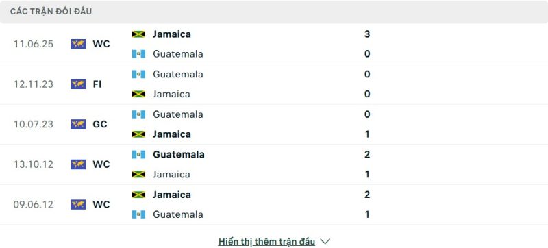 Thống kê phong độ gần đây Jamaica vs Guatemala