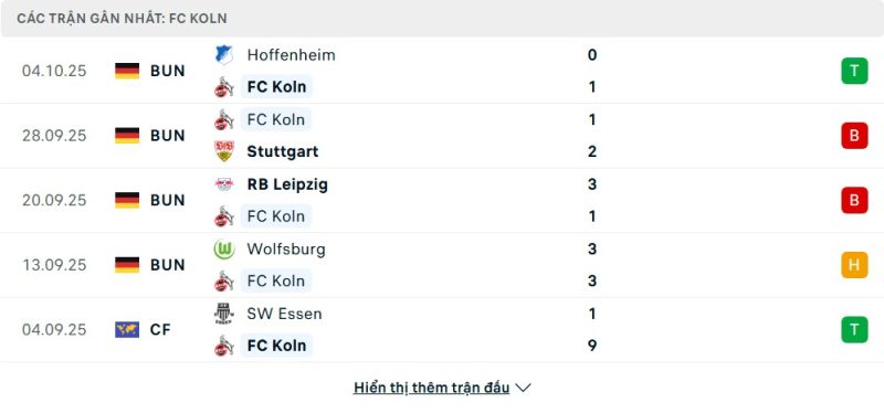 Köln đang có một vị trí tương đối tốt trên bảng xếp hạng khi đứng thứ 6 với 10 điểm sau 6 vòng đấu. Tuy nhiên, phong độ gần đây của “Bầy Dê” lại cho thấy sự bất ổn đáng lo ngại. Sau giai đoạn khởi đầu ấn tượng, họ đã chững lại khi để thua 2 trong 3 trận gần nhất tại Bundesliga, bao gồm thất bại 1-3 trước Leipzig và 1-2 trước Stuttgart. Trận thắng tối thiểu 1-0 trước Hoffenheim ở vòng trước giúp họ tạm thời ngắt mạch thua, nhưng sự thiếu chắc chắn nơi hàng phòng ngự vẫn là một bài toán đau đầu.