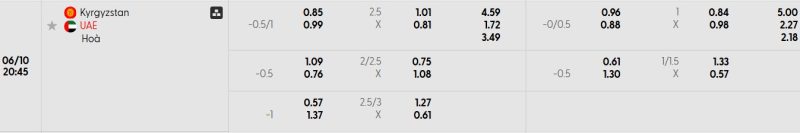 Bảng Tỷ lệ kèo bóng đá Kyrgyzstan vs UAE