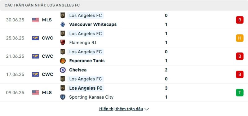 • Phong độ của Los Angeles FC
