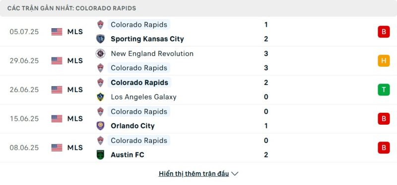 Bên kia chiến tuyến, Colorado Rapids cũng vừa trải qua thất bại 1-2 trước Sporting Kansas City, một trận đấu mà họ kiểm soát thế trận nhưng vẫn để đối thủ ghi bàn sớm và không thể gỡ kịp. Trước đó, họ có những kết quả tích cực như thắng LA Galaxy 2-0 và hòa New England Revolution 3-3, qua đó cho thấy sự tiến bộ rõ rệt trong khả năng phản công và chuyển trạng thái. Tuy nhiên, sự thiếu ổn định ở hàng thủ vẫn là vấn đề chưa được giải quyết triệt để, đặc biệt là trong các tình huống cố định.