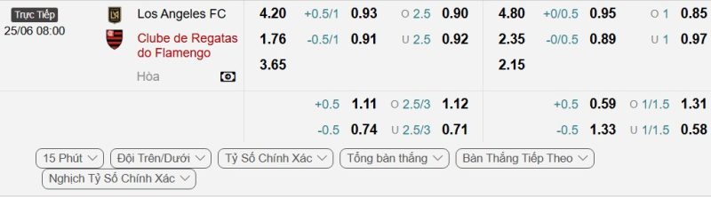 - Kèo tỷ số bóng đá hiệp 1: Los Angeles FC 0-0 Flamengo