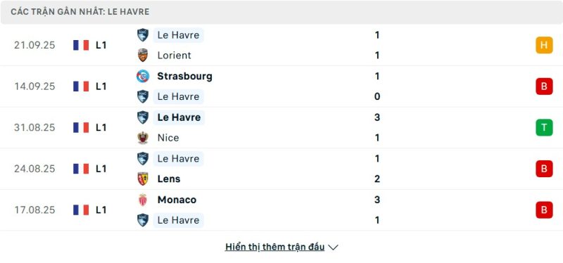 Bên kia chiến tuyến, Le Havre cũng không có sự khởi đầu thuận lợi khi chỉ có được 4 điểm sau 5 lượt trận. Đội bóng này đã để thua AS Monaco, Lens và Strasbourg, cho thấy sự thiếu ổn định trong lối chơi. Dù vậy, chiến thắng 3-1 trước Nice giúp họ phần nào lấy lại sự tự tin. Le Havre hiện đang đứng ở nhóm dưới nhưng vẫn giữ được hy vọng cải thiện thứ hạng, đặc biệt khi họ sở hữu khả năng tạo đột biến ở hàng công. Những trận hòa trước Lorient hay Angers trong loạt giao hữu cũng phần nào cho thấy sự lì lợm của họ.