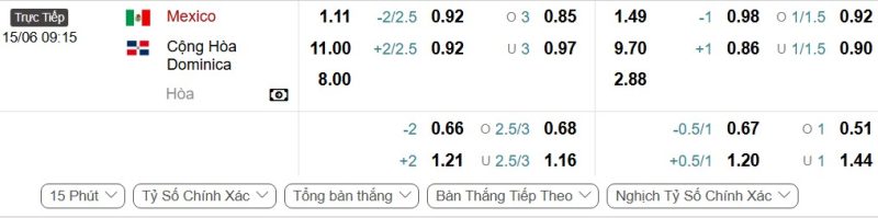 Bảng Tỷ lệ kèo bóng đá Mexico vs Cộng hòa Dominica