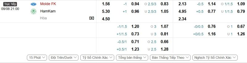 - Kèo tỷ số bóng đá hiệp 1: Molde 3-0 HamKam