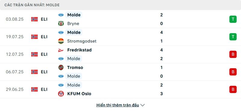 Molde vừa lấy lại phong độ với hai chiến thắng ấn tượng liên tiếp trước Bryne 2-0 và Stromsgodset 4-1, thể hiện khả năng ghi bàn bùng nổ. Dù trải qua chuỗi ba trận thua trước đó, họ đang cho thấy sự trở lại đúng lúc khi được chơi trên sân nhà, nơi từng chứng kiến những chiến thắng đậm. Vị trí thứ 11 trên BXH là chưa tương xứng với năng lực của họ, và đây là cơ hội để Molde cải thiện điểm số.