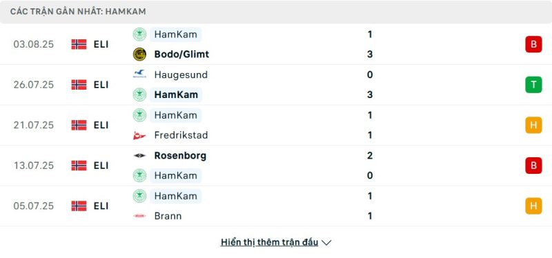 Bên kia chiến tuyến, HamKam đang chìm sâu trong khủng hoảng. Thất bại 1-3 trước Bodo/Glimt mới đây càng khẳng định phong độ bất ổn của họ. Trong 7 trận gần nhất, HamKam chỉ thắng 1, hòa 3 và thua tới 3 trận. Hàng công thiếu ý tưởng trong khi hàng thủ dễ bị khai thác khiến đội bóng này sa sút. Việc nằm trong nhóm “cầm đèn đỏ” là hệ quả tất yếu nếu họ không sớm cải thiện phong độ.