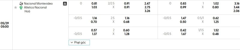 Bảng Tỷ lệ kèo bóng đá Nacional vs Atlético Nacional