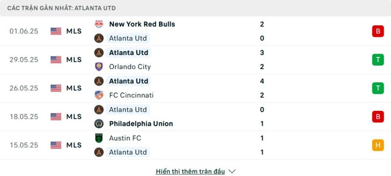 - Phong độ của Atlanta United