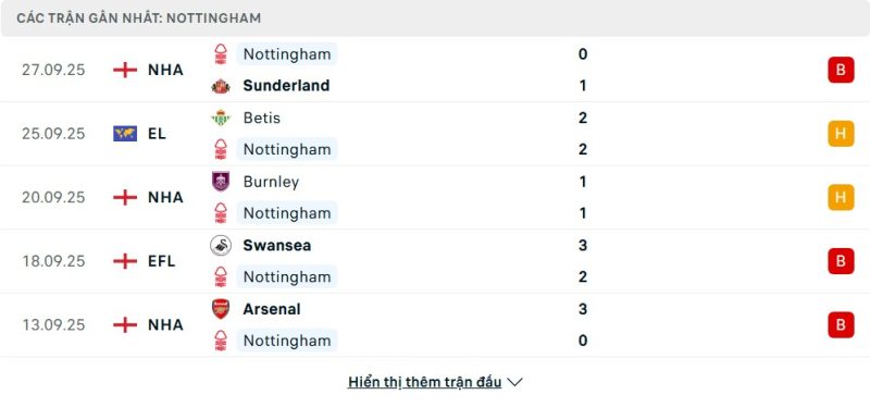 Nottingham Forest đang trải qua chuỗi trận khá bết bát khi chỉ có 5 điểm, đứng thứ 17 trên bảng xếp hạng. Đội bóng này mới thắng 1 trận trước Brentford, còn lại là hòa Burnley và Crystal Palace, cùng nhiều thất bại đáng thất vọng như trước Arsenal, West Ham hay Sunderland. Dù tham dự Europa League, Forest cũng chưa tạo được dấu ấn khi chỉ cầm hòa Real Betis. Với vị trí sát nhóm cầm đèn đỏ, họ cần nỗ lực lớn để cải thiện kết quả, nhưng phong độ thiếu ổn định khiến khả năng gây bất ngờ trên sân khách không được đánh giá cao.