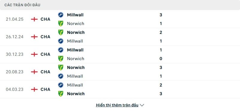 Bảng Tỷ lệ kèo bóng đá Norwich City vs Millwall