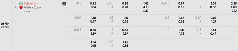 Bảng Tỷ lệ kèo bóng đá Palmeiras vs Al Ahly FC
