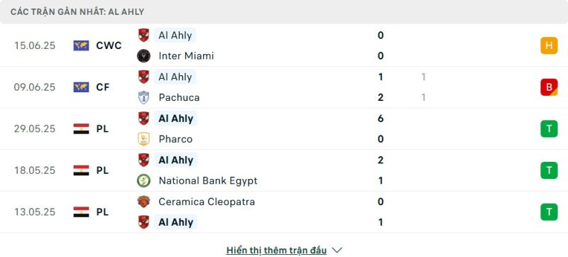 5 trận gần nhất của Al Ahly FC: D-D-W-W-W