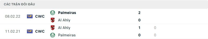 Thành tích đối đầu của Palmeiras vs Al Ahly FC