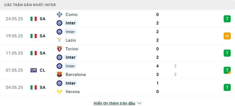 Bên kia chiến tuyến, Inter cũng đã có một mùa giải không hề tồi, nhưng vẫn thiếu một chút sắc bén để bước lên đỉnh cao. Họ kết thúc Serie A ở vị trí thứ hai sau Napoli và dừng bước tại bán kết Coppa Italia, điều đó phần nào cho thấy sự thiếu ổn định của đội bóng áo xanh-đen trong những thời khắc quyết định. Dù đang có chuỗi 6 trận bất bại liên tiếp, trong đó có 3 trận thắng và 3 trận hòa, nhưng việc không thể duy trì sự hưng phấn suốt cả mùa đã khiến Inter đánh mất lợi thế ở đấu trường quốc nội.