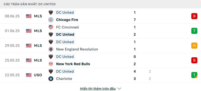 Thống kê phong độ gần đây Real Salt Lake vs DC United
