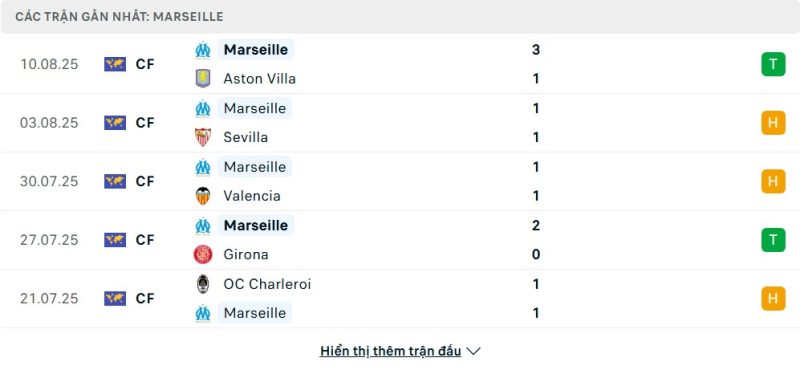 Bên kia chiến tuyến, Marseille lại thể hiện phong độ ấn tượng hơn khi có nhiều chiến thắng thuyết phục trong giai đoạn chuẩn bị. Họ đánh bại Aston Villa, Girona và Excelsior với tỷ số cách biệt, đồng thời chỉ hòa Sevilla và Valencia. Đặc biệt, Marseille đã thắng Rennes 4-2 ở vòng cuối mùa trước, tạo lợi thế tâm lý không nhỏ. Sự tự tin cùng hiệu quả trong tấn công giúp đội bóng của HLV Marcelino hướng tới một khởi đầu mạnh mẽ ở mùa giải mới.