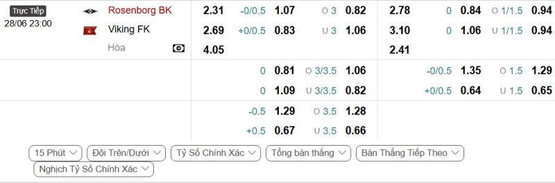 Bảng Tỷ lệ kèo bóng đá Rosenborg vs Viking