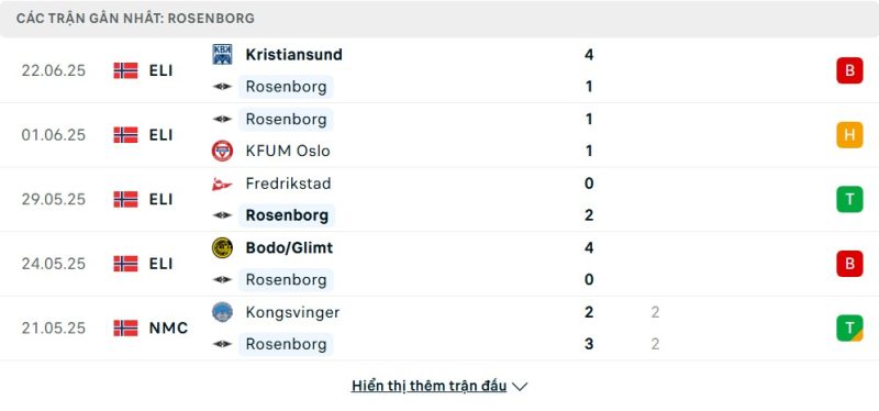 Rosenborg đang có dấu hiệu sa sút khi chỉ thắng 2 trong 5 trận gần nhất tại giải VĐQG Na Uy. Họ từng có chuỗi trận bất bại vào đầu tháng 5 nhưng đã phải nhận 2 thất bại nặng nề trước Bodø/Glimt 0-4 và Kristiansund 1-4. Tại đấu trường cúp quốc gia, họ vẫn giành được các chiến thắng cần thiết để tiến sâu, nhưng ở Eliteserien, đội bóng thành Trondheim đang chật vật duy trì vị trí trong top 3. Với hàng thủ thi đấu thiếu chắc chắn và phong độ không ổn định, Rosenborg gặp nhiều khó khăn khi đối đầu các đội bóng mạnh.