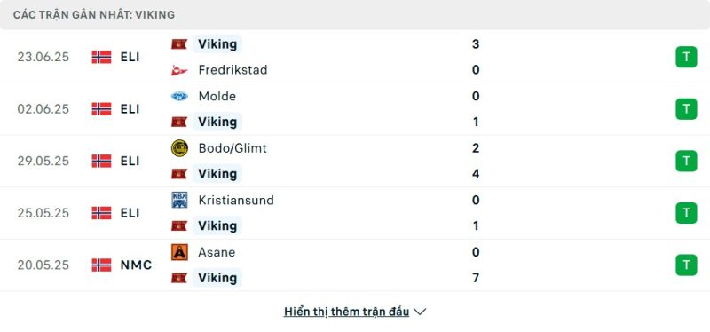 Bên kia chiến tuyến, Viking thể hiện phong độ ấn tượng và ổn định khi thắng tới 5 trong 6 trận gần nhất trên mọi đấu trường. Đặc biệt, họ đã đánh bại Bodø/Glimt 2-1 ngay trên sân khách và tiếp tục vượt qua Molde và Fredrikstad ở những vòng sau. Không những tấn công hiệu quả, hàng thủ Viking cũng thi đấu kín kẽ với 4 trận giữ sạch lưới trong chuỗi trận vừa qua. Phong độ thăng hoa của các trụ cột giúp họ vững vàng ở vị trí dẫn đầu trên BXH, đồng thời tạo được sự tự tin lớn mỗi khi phải chơi trên sân đối phương.