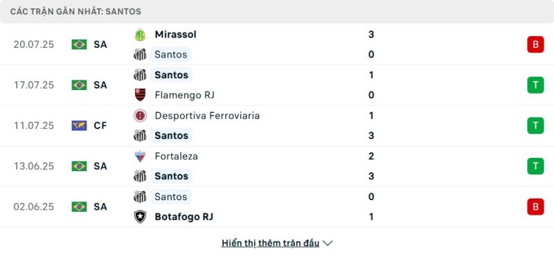 Santos vừa trải qua chuỗi trận khá phức tạp. Dù có được những chiến thắng quan trọng trên sân nhà, nhưng sự thiếu ổn định vẫn là điều dễ nhận thấy trong cách họ nhập cuộc. Những trận gần đây chứng kiến Santos không duy trì được nhịp độ đều đặn, và điểm yếu trong việc duy trì sự tập trung vẫn có thể khiến họ đánh mất lợi thế. Tuy nhiên, với sự cổ vũ từ khán giả nhà, Santos thường chơi kỷ luật và không dễ bị khuất phục.