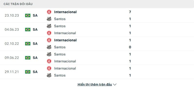 Bảng Tỷ lệ kèo bóng đá Santos vs Internacional