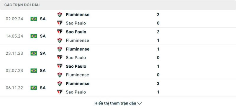 Thành tích đối đầu của São Paulo vs Fluminense