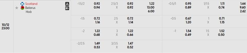 Bảng Tỷ lệ kèo bóng đá Scotland vs Belarus