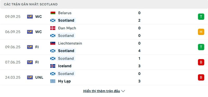 Scotland đang có một khởi đầu đầy hứa hẹn tại vòng loại World Cup 2026. Sau hai lượt trận đầu tiên tại bảng C, họ đã giành được 4 điểm và đang tạm thời chiếm giữ vị trí thứ hai, chỉ xếp sau Đan Mạch về hiệu số bàn thắng. Phong độ của đội bóng này đang rất ổn định khi bất bại ở cả hai trận đã đấu, bao gồm một chiến thắng quan trọng 2-0 ngay trên sân của chính Belarus và một trận hòa không bàn thắng đầy quả cảm trước đối thủ mạnh Đan Mạch. Nhìn xa hơn, Scotland cho thấy họ là một tập thể đáng gờm với những kết quả ấn tượng.