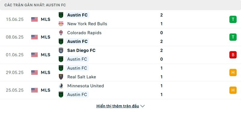 5 trận gần nhất của Austin FC: W-W-L-D-D