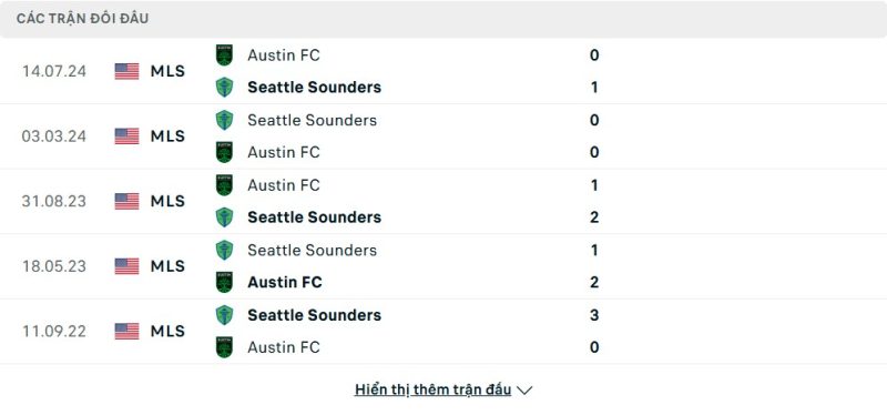 Thành tích đối đầu của Seattle Sounders FC vs Austin FC