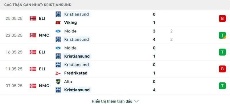 - Phong độ của Kristiansund BK