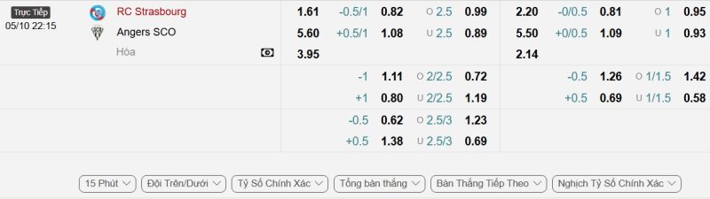 Bảng Tỷ lệ kèo bóng đá Strasbourg vs Angers