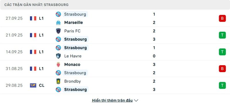 5 trận gần nhất của Strasbourg: L-W-W-L-W