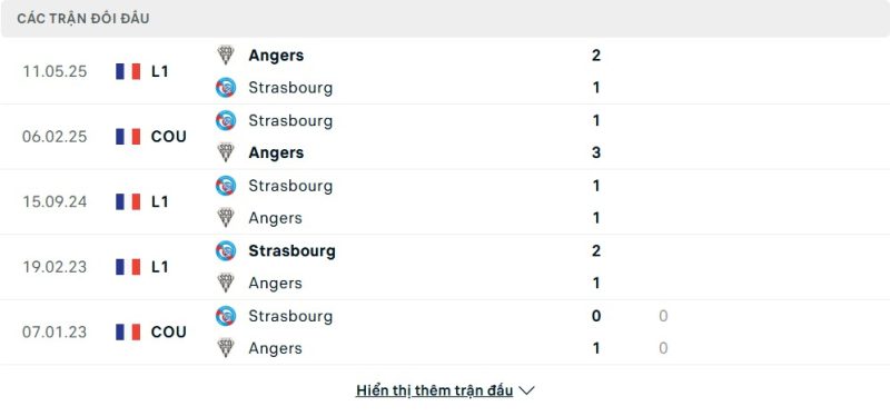 Thống kê phong độ gần đây Strasbourg vs Angers