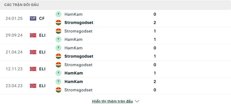 Thành tích đối đầu của Strømsgodset vs HamKam