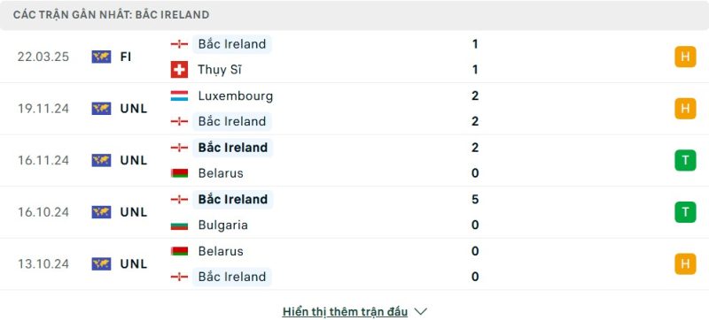 - Phong độ của Bắc Ireland