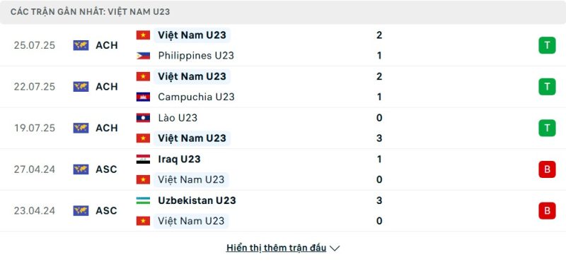 Thống kê phong độ gần đây U23 Việt Nam vs U23 Indonesia