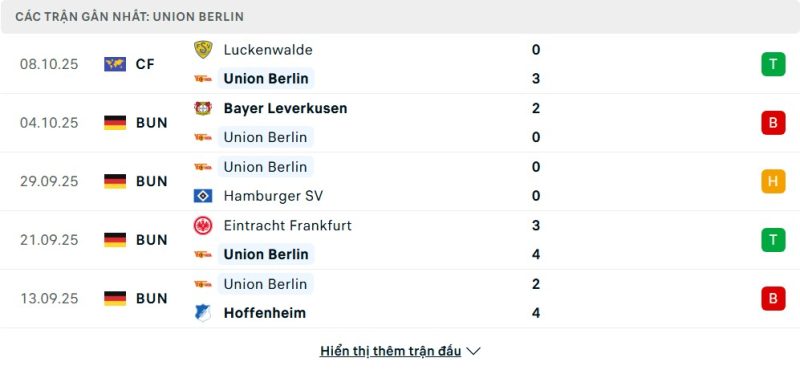 Union Berlin đang trải qua một giai đoạn khởi đầu mùa giải đầy biến động. Sau 6 vòng đấu, đội bóng thủ đô hiện đang tạm xếp ở vị trí thứ 13 trên bảng xếp hạng Bundesliga với 7 điểm. Phong độ gần đây của họ không thực sự ổn định với chuỗi 5 trận chỉ có 1 chiến thắng, 1 trận hòa và phải nhận tới 3 thất bại. Điểm sáng hiếm hoi là chiến thắng kịch tính 4-3 trước Frankfurt, nhưng ngay sau đó họ lại để thua 0-2 trước Leverkusen và bị HSV cầm hòa không bàn thắng, cho thấy sự thiếu ổn định trong cả tấn công lẫn phòng ngự.