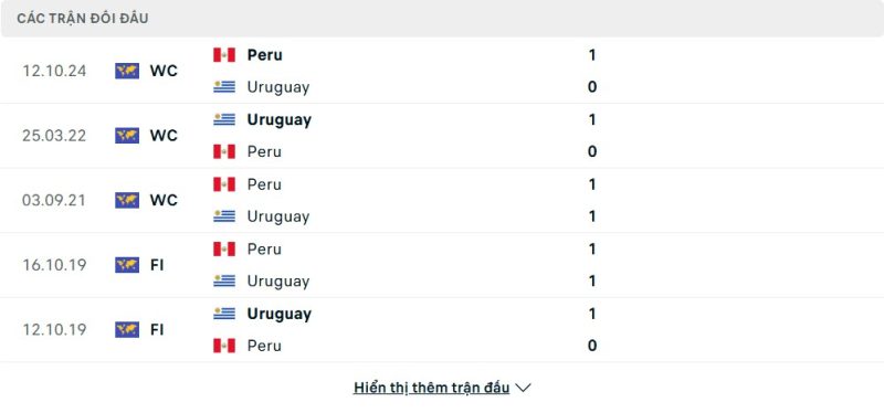 Bảng Tỷ lệ kèo bóng đá Uruguay vs Peru