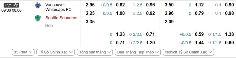 - Kèo tỷ số bóng đá hiệp 1: Vancouver Whitecaps 2-0 Seattle Sounders FC
