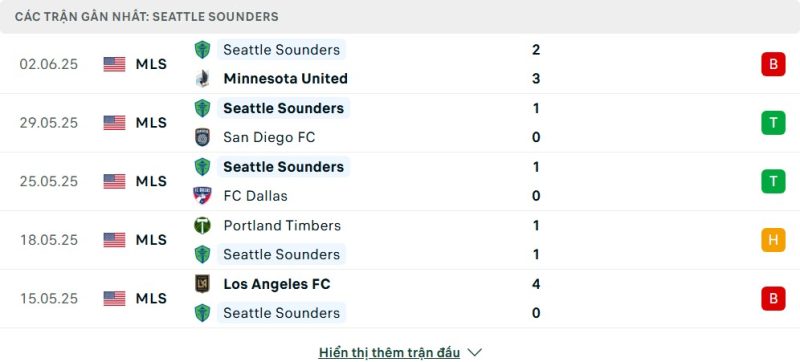 5 trận gần nhất của Seattle Sounders FC: L-W-W-D-L