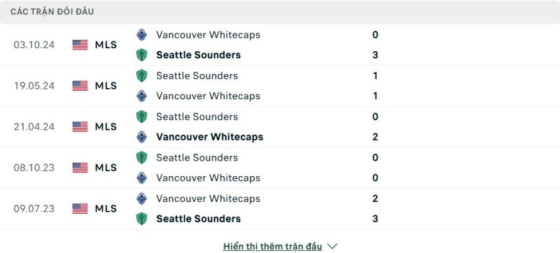 Thành tích đối đầu của Vancouver Whitecaps vs Seattle Sounders FC