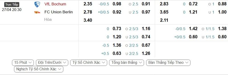 Bảng Tỷ lệ kèo bóng đá VfL Bochum vs Union Berlin