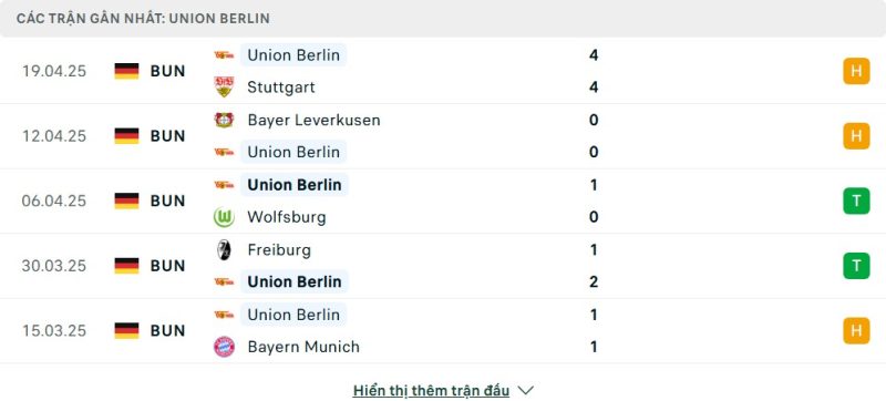 Bên kia chiến tuyến, Union Berlin đang đứng ở vị trí thứ 13 với 35 điểm sau 30 vòng đấu. Với khoảng cách an toàn 8 điểm so với nhóm xuống hạng, họ đang nắm quyền tự quyết trong tay. Union Berlin đã có sự cải thiện mạnh mẽ trong những vòng đấu gần đây, với chuỗi 6 trận bất bại, bao gồm 3 chiến thắng và 3 trận hòa. Đây là một chuỗi phong độ rất tích cực, giúp họ vượt qua giai đoạn khó khăn và củng cố hy vọng trụ hạng.