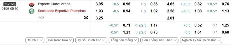 Bảng Tỷ lệ kèo bóng đá Vitória vs Palmeiras