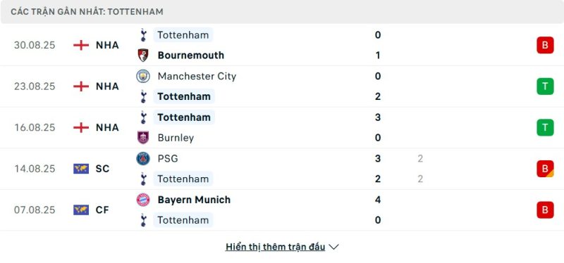 Tottenham Hotspur đang trình diễn một lối chơi rất khó lường và hiệu quả. Việc đánh bại Man City cho thấy họ có thể thi đấu chặt chẽ và phản công sắc bén trước các đội bóng lớn. Tuy nhiên, trận thua Bournemouth lại bộc lộ rằng họ có thể gặp khó khăn trước những đối thủ chơi phòng ngự lùi sâu. Hàng công của Spurs đã ghi được 5 bàn và hàng thủ mới chỉ để lọt lưới 1 bàn, cho thấy sự cân bằng đáng nể giữa công và thủ. Bản lĩnh của họ sẽ được thử thách trong không khí nóng bỏng của một trận derby sân khách.